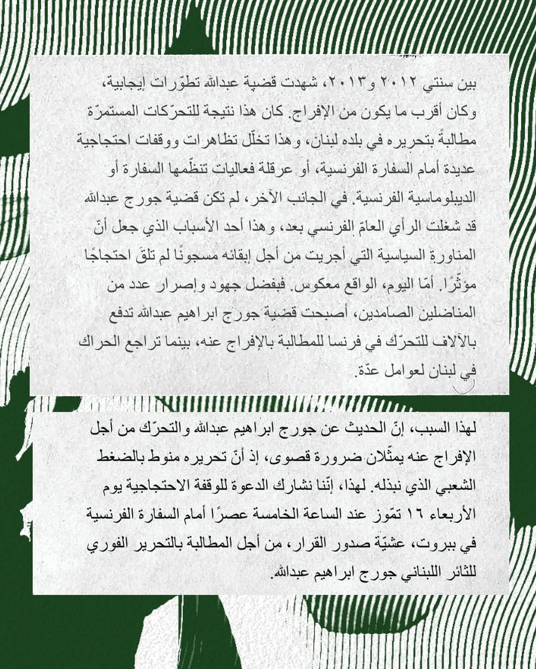 دعوة إلى اعتصام أمام السفارة الفرنسية في بيروت للمطالبة بالإفراج عن المعتقل جورج عبدالله