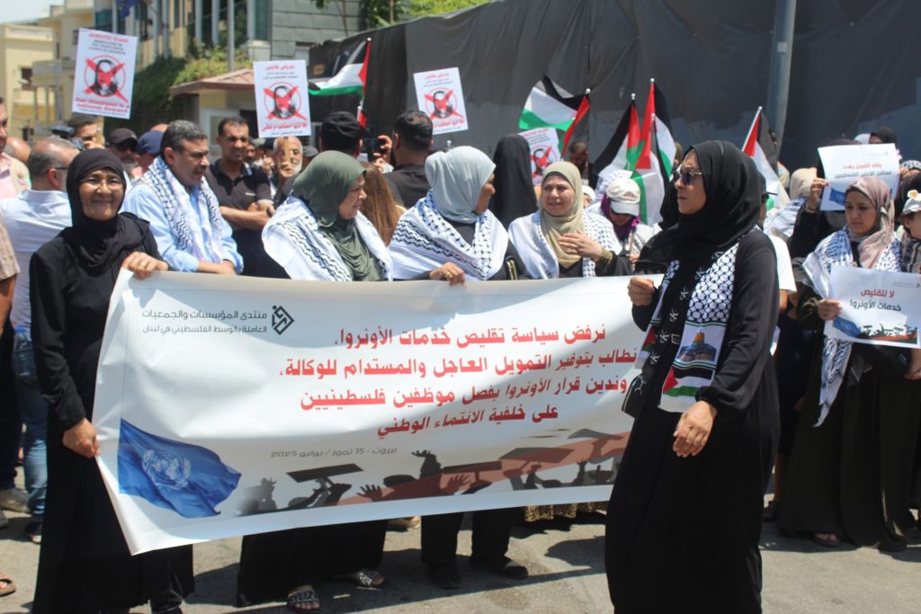 اعتصام للاجئين/ات من فلسطينيي/ات سوريا أمام مكتب الأونروا في مخيم عين الحلوة