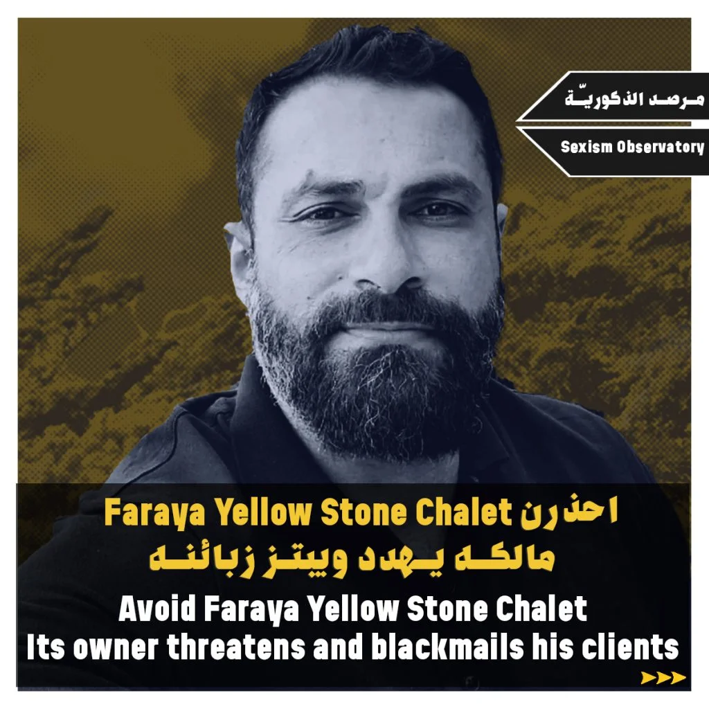 في 5 و6 حزيران الحالي، هدد رامز (حسابه على انستغرام: Ram.lb)، مالك Faraya Yellow Stone Chalet، شابة بإطلاق حملة ضدها «يشوفها كل لبنان»، تتضمن صوراً لها ورقم هاتفها. كما أرسل عبر انستغرام، من حساب الشاليه، صورة لها كتب عليها اسم حسابها و«تابعوني لمزيد من الصور المثيرة والعارية».